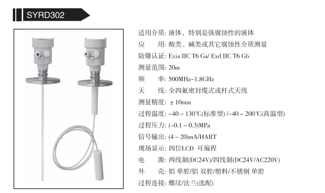 SYRD300系列導(dǎo)波雷達(dá)物位儀 價(jià)格: 編號(hào):SYRD302